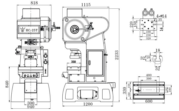 1、公稱作用力:25T 沖程:15/20/25/30/35mm